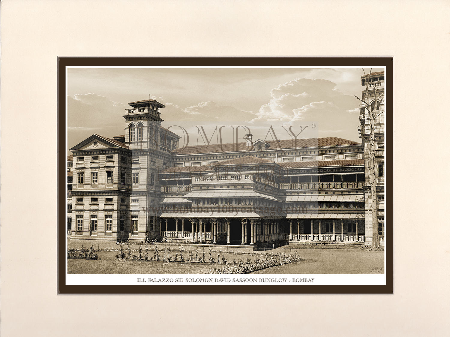 Magnate Publishing House > Products > Bombay 100 Years Ago > Bombay 100 Years Ago - Vintage Archival Prints > Ill Palazzo sir Solomon David sasson bunglow (Code: 199) – Mounted & Wooden Frames